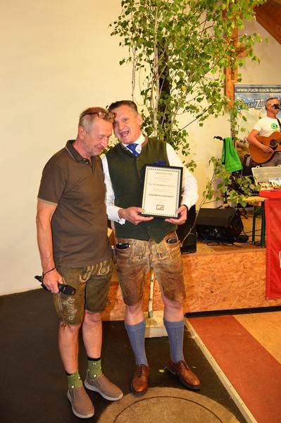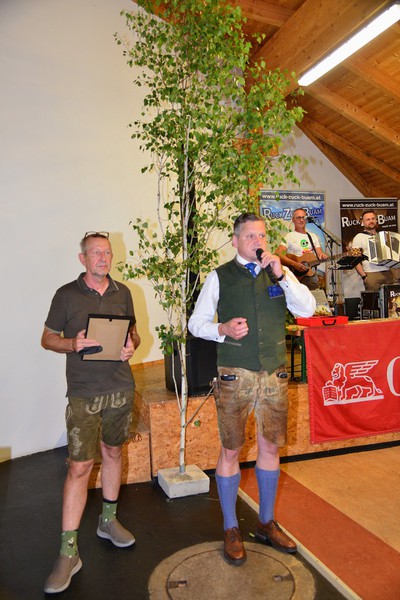 Anschließend wurde die Eröffnung im Pfarrstadel gemeinsam mit den zahlreichen Besuchern bei Getränken und einem ausgezeichnet schmeckenden Hirschgulasch gefeiert. Dipl.Tzt.Bernhard Tacacs wurde die Ehrenmitgliedschaft des Vereines überreicht.