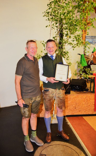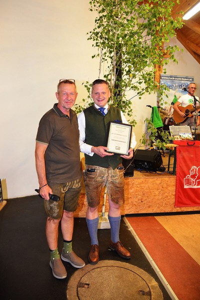 Von den Kameradem des Jagdvereines und den Freunden wurde ihm von Jagdleiter Franz Grandits und Obmann Bernhard Pieber ein Gutschein der Fa. Waffen Siegert in Güssing überreicht.